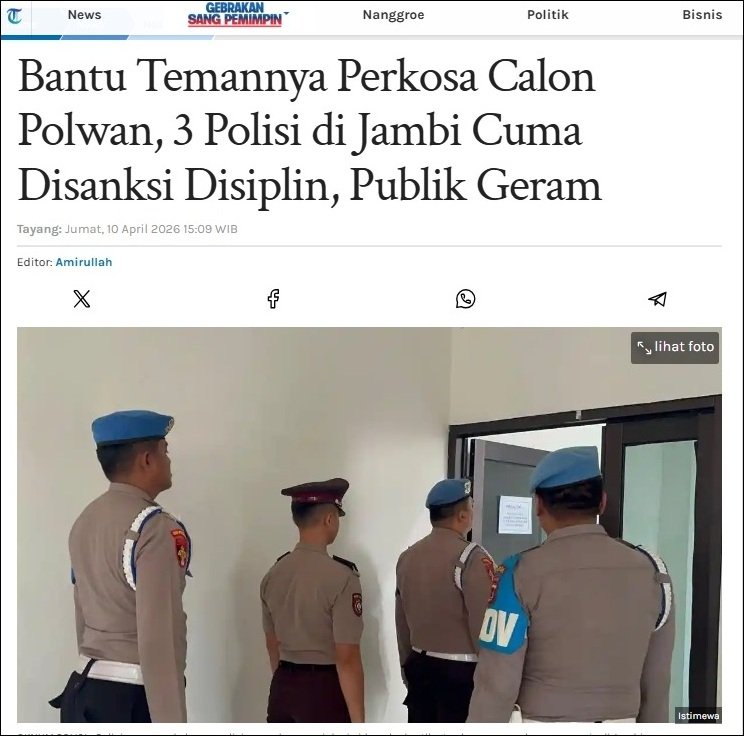 Bantu Temannya Perkosa Calon Polwan, 3 Polisi di Jambi Cuma Disanksi Disiplin, Publik Geram