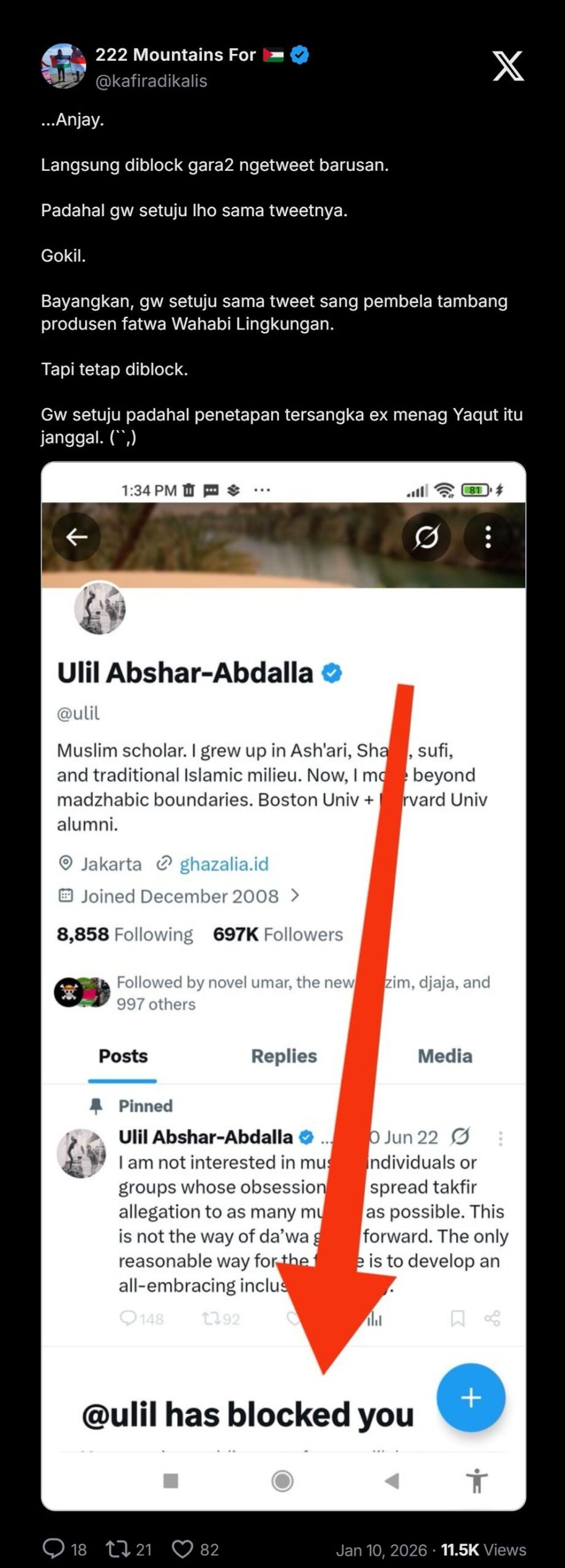 Tanggapan Bung Iyut yang langsung membuat dia diblokir oleh Ulil 😁