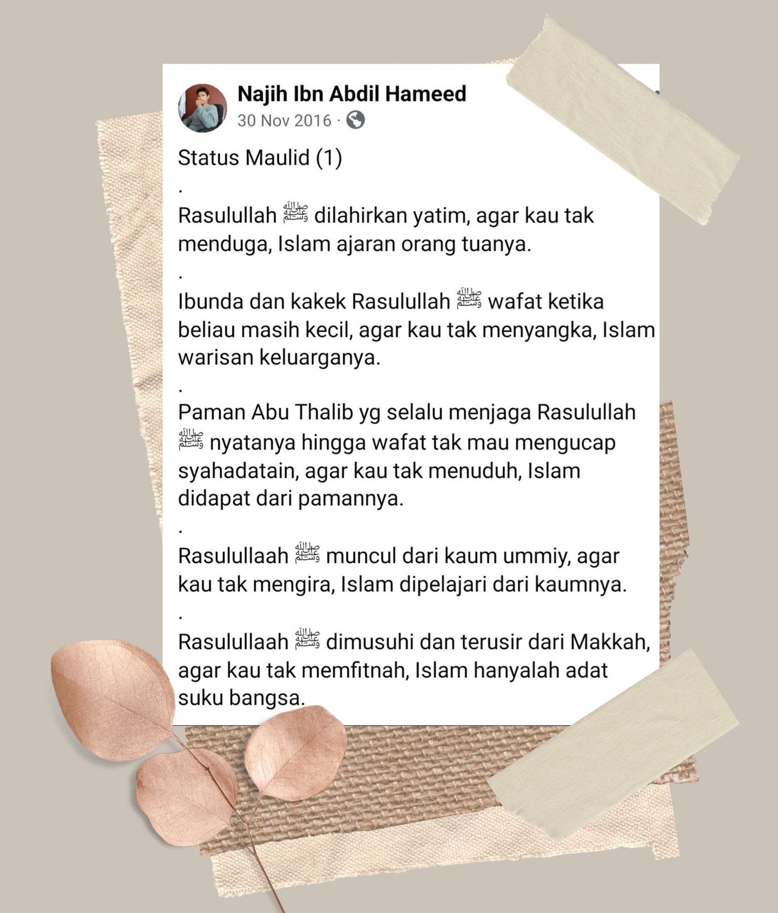 Rasulullah dilahirkan yatim, agar kau tak menduga, Islam ajaran orang tuanya.