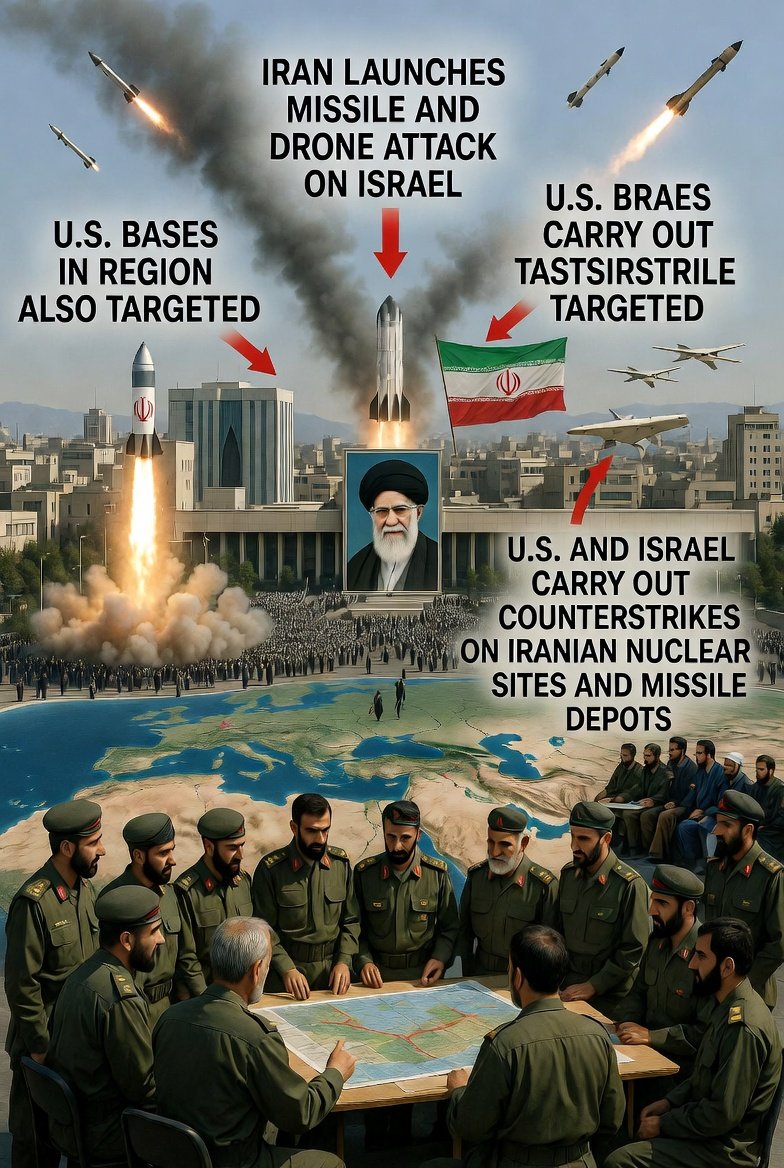 Iran langsung merespons dengan gelombang rudal dan drone ke Israel serta basis militer AS di negara-negara Teluk seperti UAE, Qatar, Bahrain, Kuwait, dan Yordania. Islamic Revolutionary Guard Corps (IRGC) menyatakan akan melancarkan “operasi ofensif paling ganas dalam sejarah” sebagai balas dendam atas “pembunuhan” Khamenei. Serangan balasan ini menyebabkan sirene meraung di Tel Aviv dan Yerusalem, serta korban sipil di kedua pihak, termasuk laporan puluhan anak tewas akibat serangan ke sekolah di Iran selatan.