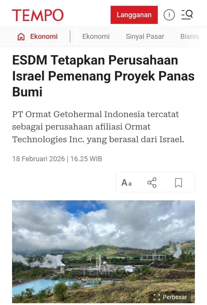 Kementerian ESDM Tetapkan Perusahaan Israel Sebagai Pemenang Proyek Panas Bumi di Maluku Utara