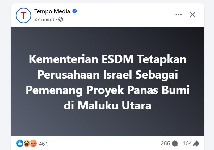 Kementerian ESDM Tetapkan Perusahaan Israel Sebagai Pemenang Proyek Panas Bumi di Maluku Utara