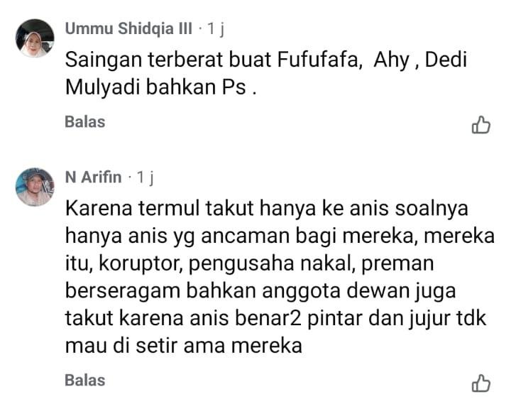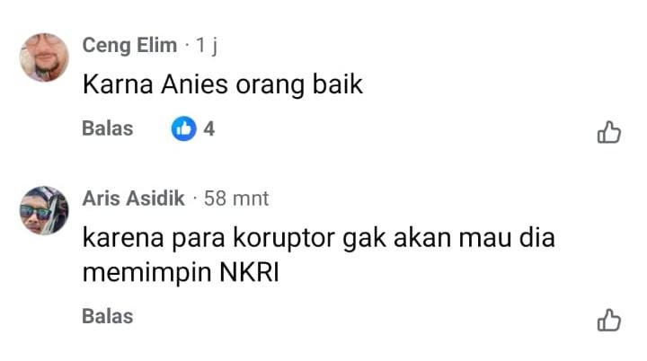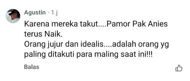 “Karena mereka takut….Pamor Pak Anies terus Naik. Orang jujur dan idealis….adalah orang yg paling ditakuti para maling saat ini!!!” (Agustin)