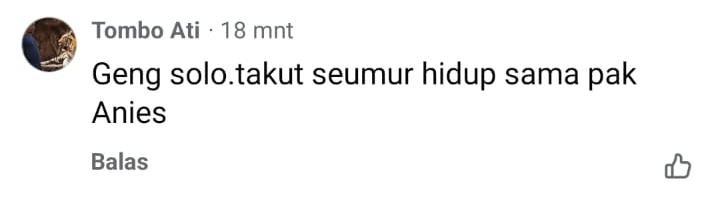 “Geng solo takut seumur hidup sama pak Anies” (Tombo Ati)