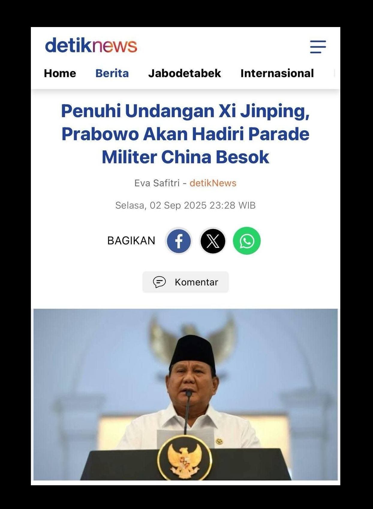 Tapi, rupa-rupanya seruan itu tidak sampai ke telinganya. Setelah yakin akan mendapat dukungan militer dan polisi, Prabowo pergi ke China untuk hadir di parade militer.