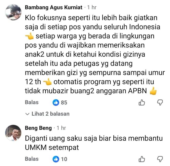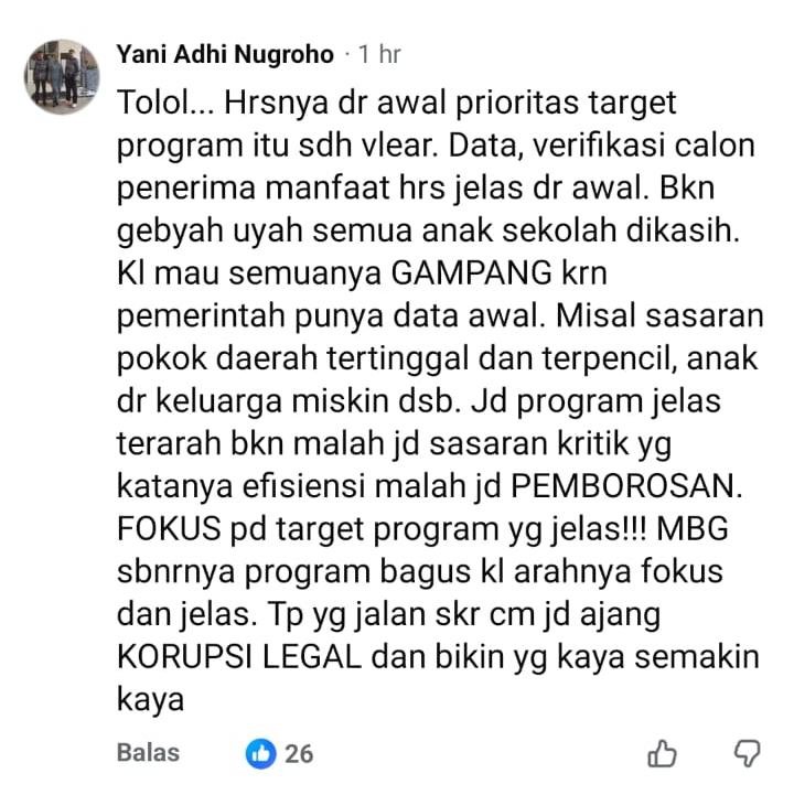 Emang ini program ngawur. mbg ini lebih cocok untuk ibu hamil,balita dan masyarakat yg rentan gizi buruk. ora gebyah uyah ngawur buang2 duit.