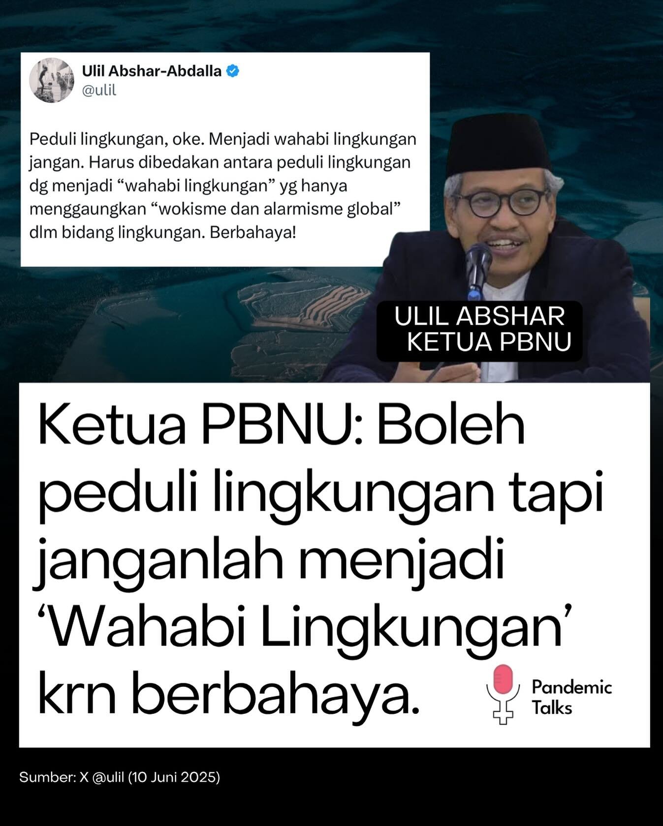 Maka wajar bila publik mengaitkannya dengan bencana tersebut. Bukan karena Ulil menggali tambang, tapi karena wacananya mendukung pihak yang dituding sebagai penyebab kerusakan.