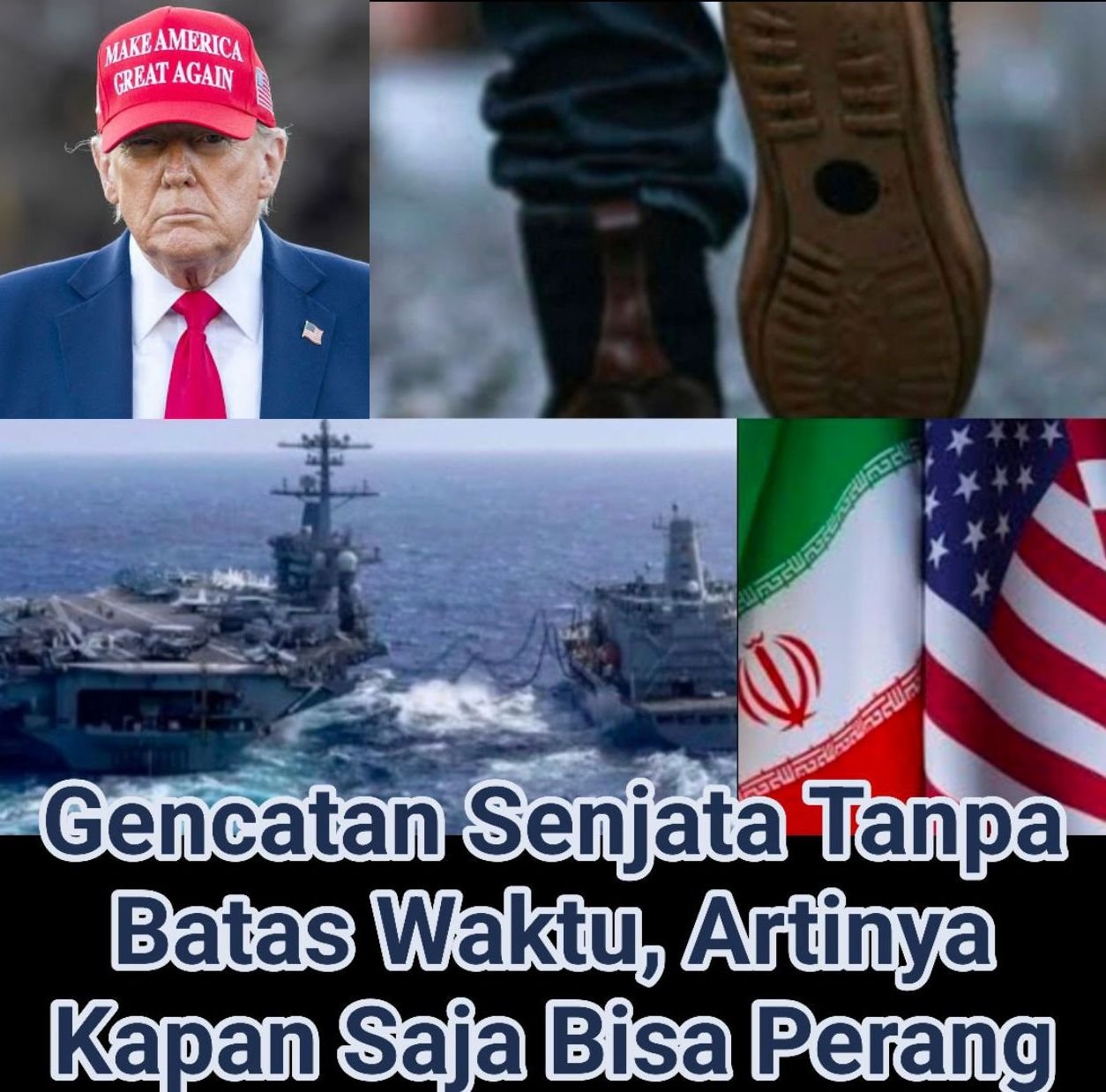 Trump umumkan sendiri gencatan senjata tanpa batas waktu. Itu artinya Iran harus Siaga Satu terus, karena sewaktu-waktu bisa saja diserang. Sebab, Selat Hormuz masih diblokade Amerika di ujung.