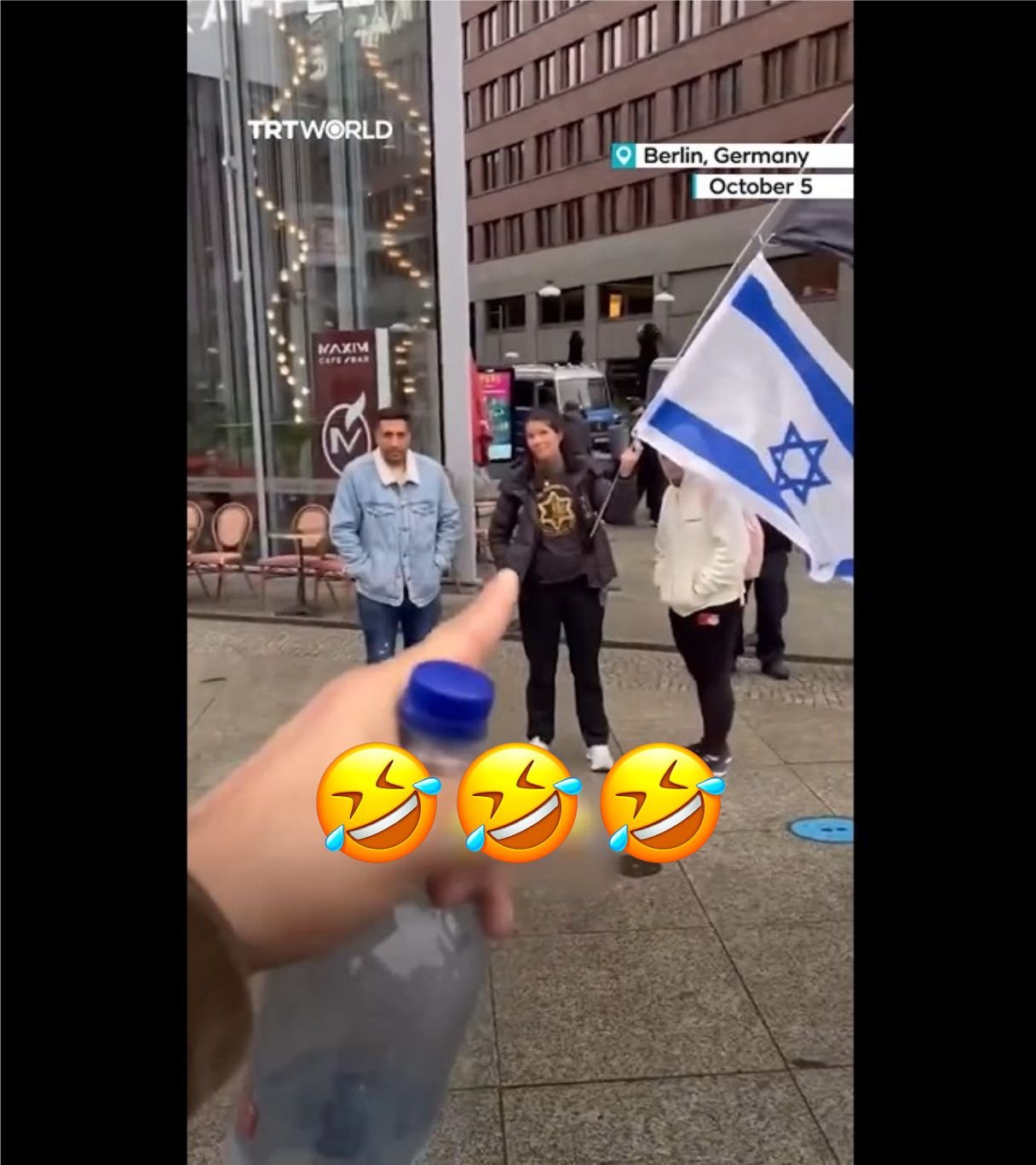🔴Seorang wanita yang berdemonstrasi untuk mendukung tentara Israel di Berlin, Jerman, menjadi bahan ejekan setelah dibiarkan berdiri sendirian tanpa dukungan publik.