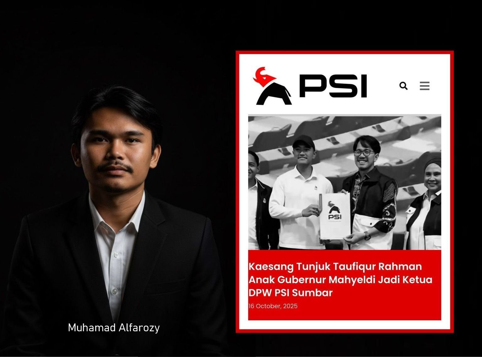 Langkah politik Taufiqur Rahman, putra Gubernur Sumatera Barat Mahyeldi Ansharullah, yang menerima penunjukan sebagai Ketua DPW Partai Solidaritas Indonesia (PSI) Sumatera Barat pada 15 Oktober 2025 lalu, sontak menjadi sorotan tajam di tengah publik Sumbar. Pengumuman yang dilakukan dalam forum konsolidasi PSI di Jakarta itu tidak hanya menciptakan kegaduhan lokal, tetapi juga memunculkan banyak spekulasi terkait arah dan motif politik yang melatarbelakanginya.