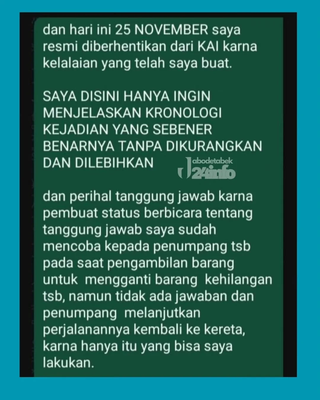 Di tengah ramainya komentar dan teori, muncul kabar bahwa seorang petugas KAI bernama Argi terkena dampak. Beredar informasi bahwa ia dipecat akibat kasus tumbler hilang.