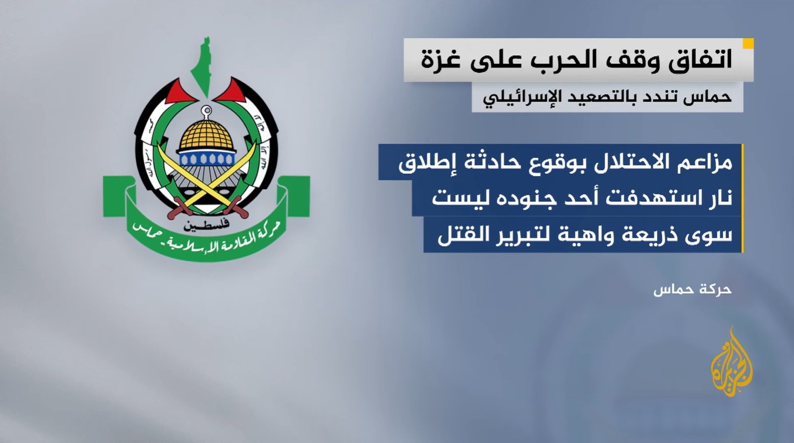 Kami menegaskan bahwa klaim kriminal pendudukan tentang penargetan salah satu tentaranya (Israel mengklaim salah satu tentaranya diserang oleh Hamas -red) hanyalah dalih palsu untuk membenarkan pembunuhan dan agresi yang terus berlanjut terhadap rakyat kami, dan upaya kriminal untuk memaksakan realitas permanen penyiksaan dan terorisme di Gaza, dengan mengabaikan secara terang-terangan ketentuan perjanjian gencatan senjata dan pemahaman yang ada.