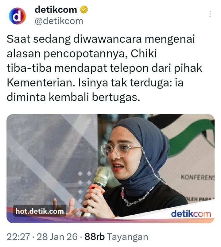 Demikian diantara komen-komen netizen setelah Chiki Fauzi kembali diminta jadi petugas haji 2026 setelah sebelumnya secara mendadak dibatalkan/dicopot tanpa alasan yang jelas.