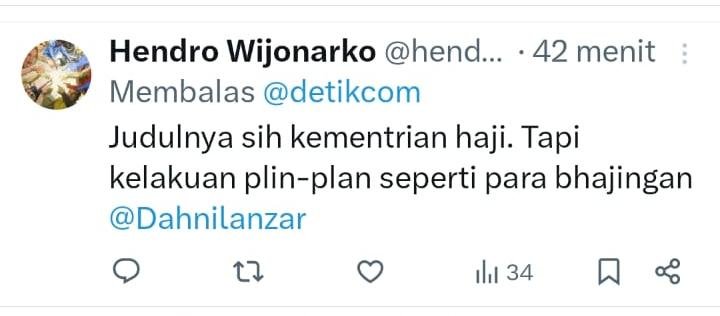 “Judulnya sih kementrian haji. Tapi kelakuan plin-plan seperti para bhajingan @Dahnilanzar”