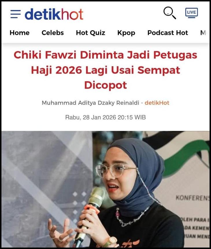 Demikian diantara komen-komen netizen setelah Chiki Fauzi kembali diminta jadi petugas haji 2026 setelah sebelumnya secara mendadak dibatalkan/dicopot tanpa alasan yang jelas.