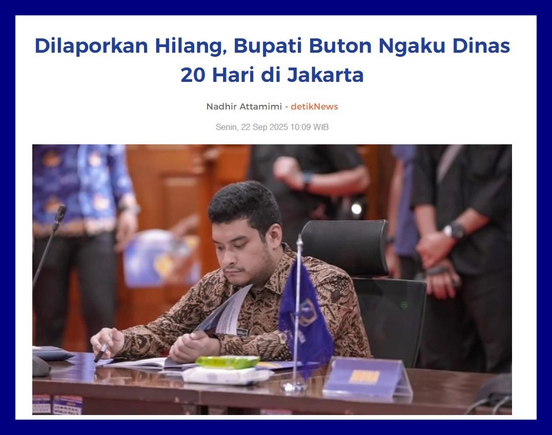 Lantas, itu Buton siapa yang ngurus jika kamu menghilang begini? Wakilmu? Aduh duh, dulu saat kampanye minta dipilih, pejabat-pejabat ini muncrat ludahnya, pilih saya, saya akan melayani masyarakat. Eh, sudah dipilih, dia pergi 20 hari ke Jakarta.
