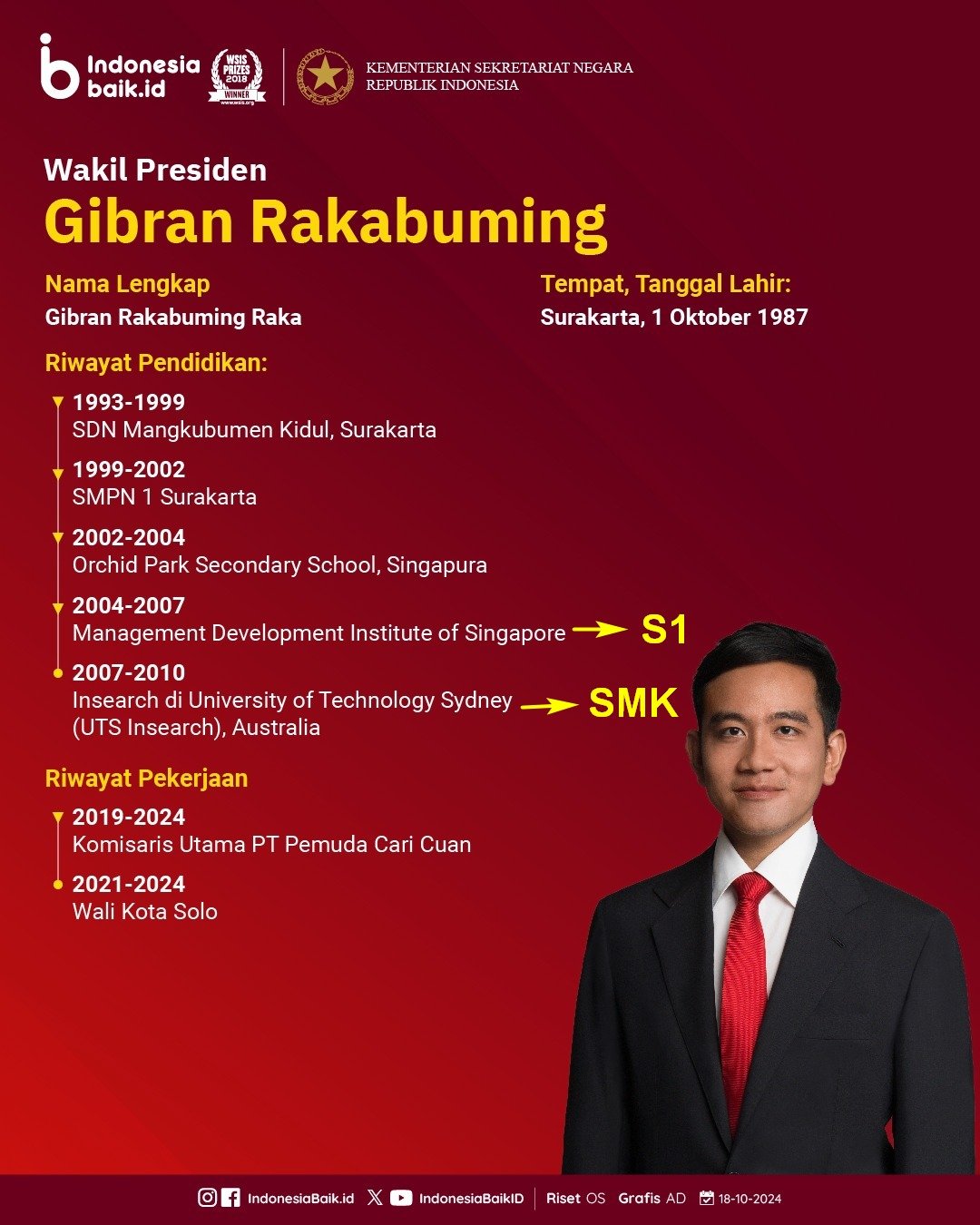 - Ini artinya Gibran lulus S1 dulu di MDIS (2004-2007), setelah itu Gibran lulus SMK di UTS Insearch (2007-2010)