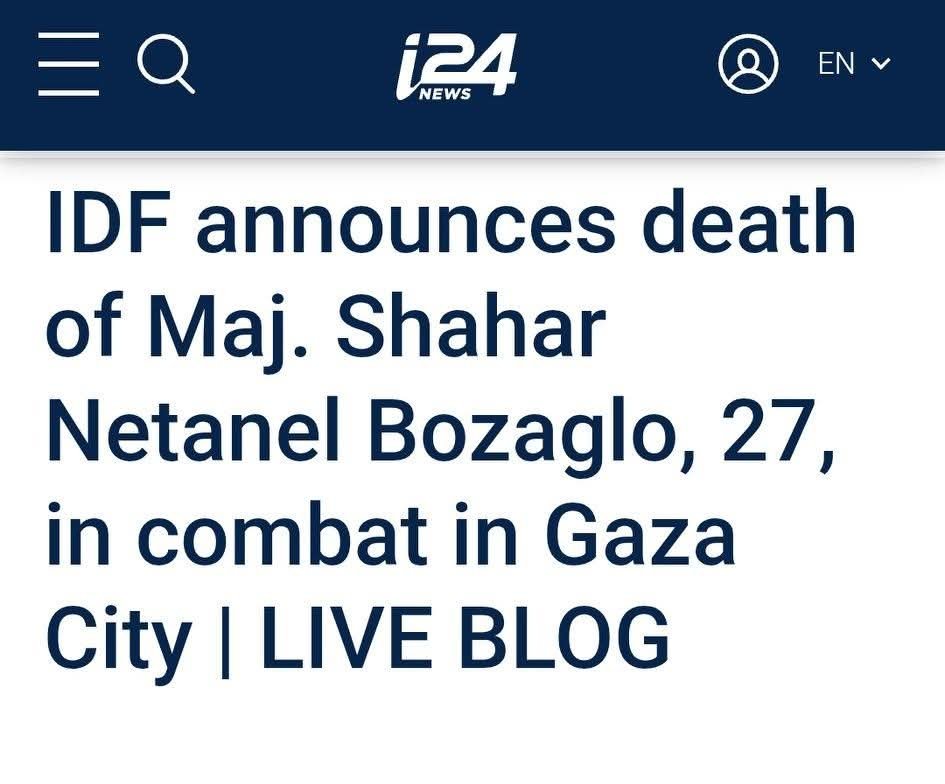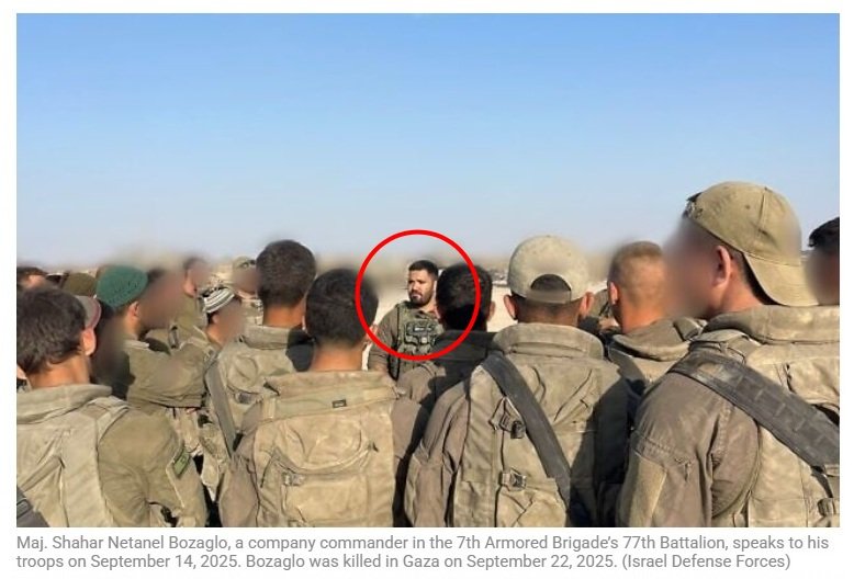 Tentara yang tewas tersebut diketahui bernama Mayor Shahar Netanel Bozaglo, 27 tahun, seorang komandan kompi di Batalyon ke-77 Brigade Lapis Baja ke-7, dari Migdal Haemek.