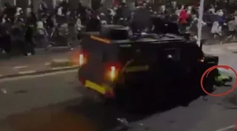 Berdasarkan rekaman video yang diterima Tempo, tampak rantis Brimob tersebut terus melaju meski telah menabrak korban. Beberapa demonstran terlihat mencoba mengejar dan menghentikan mobil tersebut. Selain melindas demonstran, polisi menembakkan gas air mata ke arah rusun.