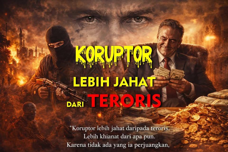 Teroris mungkin menghancurkan satu tempat. Koruptor menghancurkan sistem. Teroris menciptakan ketakutan yang terlihat. Koruptor menciptakan penderitaan yang sunyi—pelan, sistematis, dan diwariskan lintas generasi. Dalam banyak tradisi spiritual, pengkhianatan terhadap amanah dipandang lebih berat daripada dosa akibat amarah atau fanatisme. Karena amarah bisa lahir dari kebodohan, fanatisme dari kesesatan. Tetapi korupsi lahir dari keserakahan yang dipelihara, dari hati yang memilih menutup nurani demi kenyamanan.