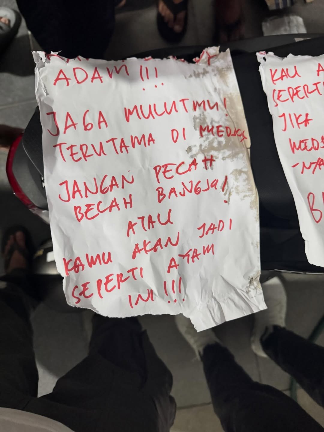 Berikut ini beberapa pesan intimidatif yang tertera di paket misterius tersebut