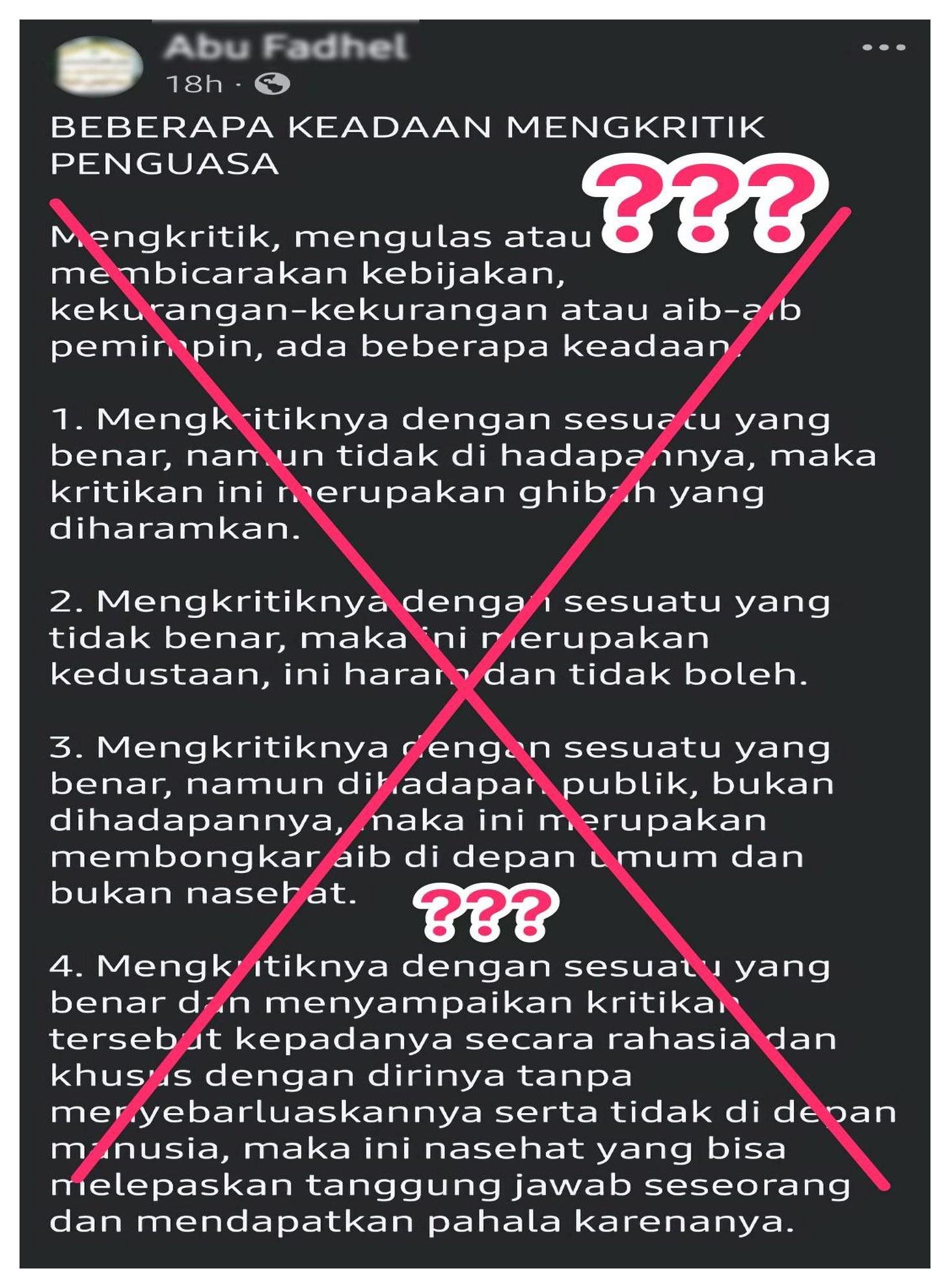 - Salah definisi: tak semua kritik adalah ġībah, sedangkan kritik terhadap kebijakan publik adalah nahyi munkar.
