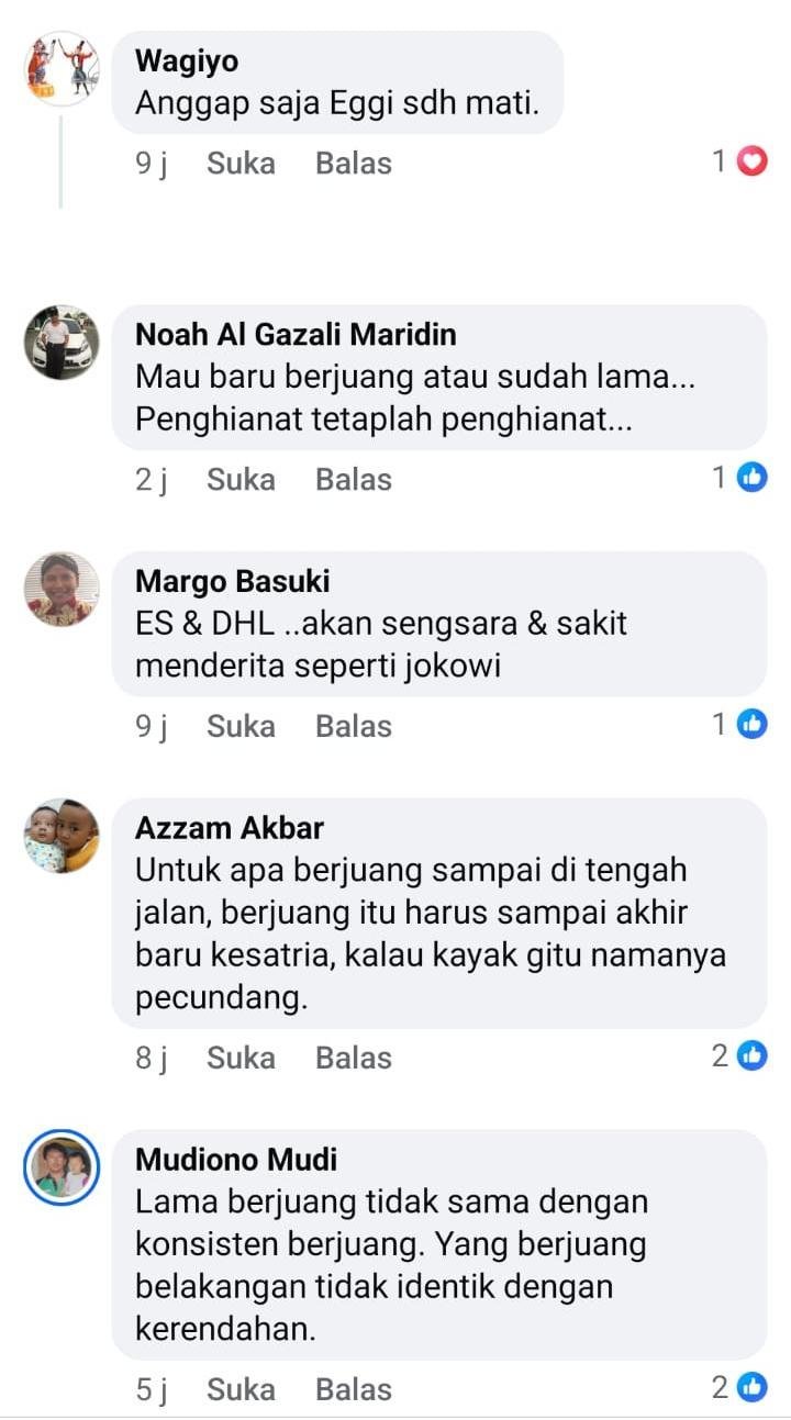 Elida menyayangkan narasi negatif lain yang menyudutkan Eggi Sudjana, termasuk tuduhan sebagai pengkhianat dan pecundang.