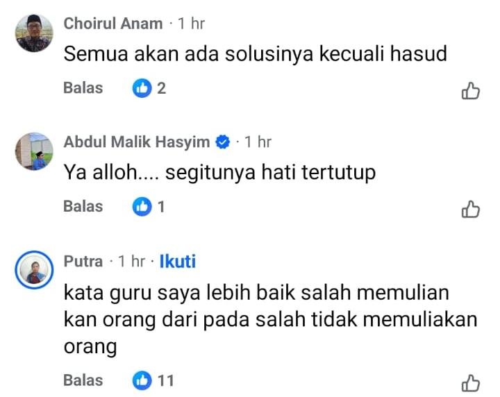 Untuk menjaga hati dan fikiran, selama ini saya jarang sekali membaca apalagi membalas ribuan komentar dan inbox dari para pendukung Kiai Imad, tapi kemarin setelah sowan ke Kiai Thoifur Ali Wafa mendampingi guru saya Syaikh Mukhtar Jamil, ada seorang yang mengomentari video pertemuan beliau berdua yang saya upload di story, akunnya akun asli, nampaknya seorang kiai pemilik lembaga Tahfidz Al-Quran di Cirebon yang cukup rajin nginbox-i saya selama ini, beliau berkomentar :
