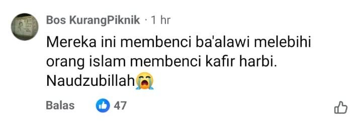 “Saya ingatkan kepada Anda saudaraku🙏 di Nusantara habaib baalwiy itu ibarat domba yang terlahir dari seekor babi yang tetap najis walaupun sudah berobah wujud. Dan siapapun yang bersama dan bahkan membelanya akan tertimpa musibah dan adzab.