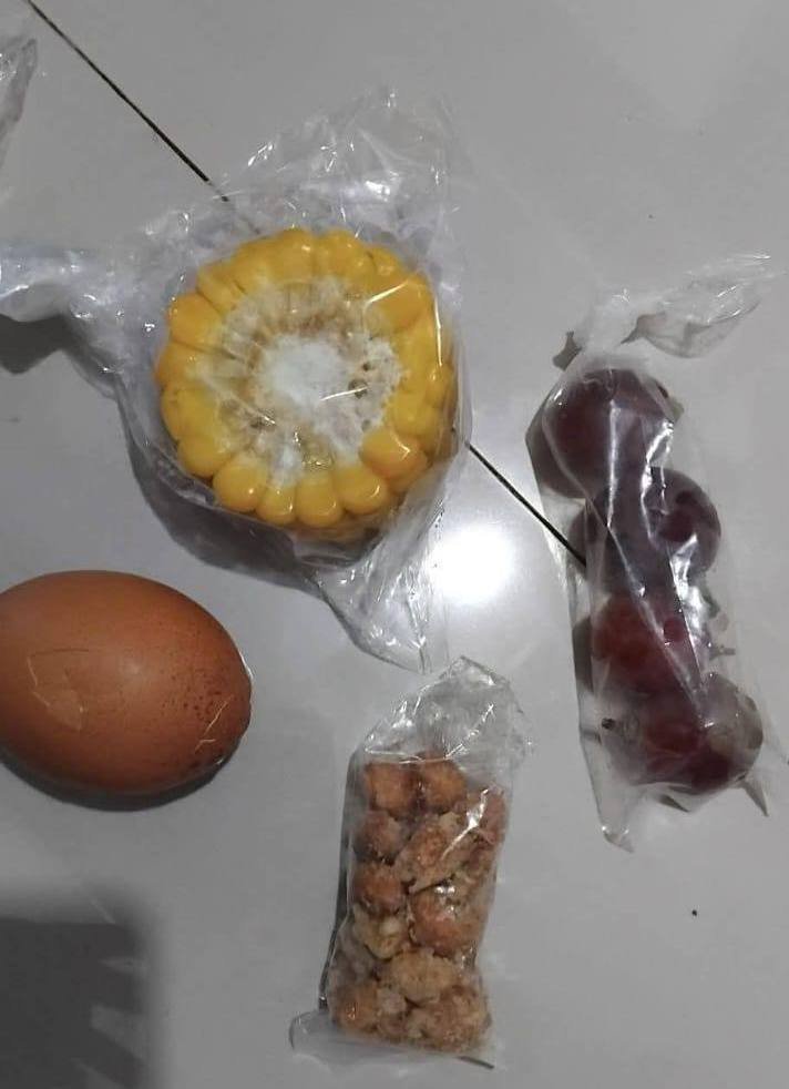 Ada beragam makanan yang dibagikan sekaligus untuk beberapa hari. Ada yang memberikan ketela rambat utuh 🙂 Ada juga yang memberikan buah nanas utuh. Saya membayangkan pesannya: setiap hari satu iris selama lima hari. Setelah habis, jangan lupa tanam pucuknya sehingga 8 bulan lagi kamu panen nanas. Negara ini baik hati sekali, kan?