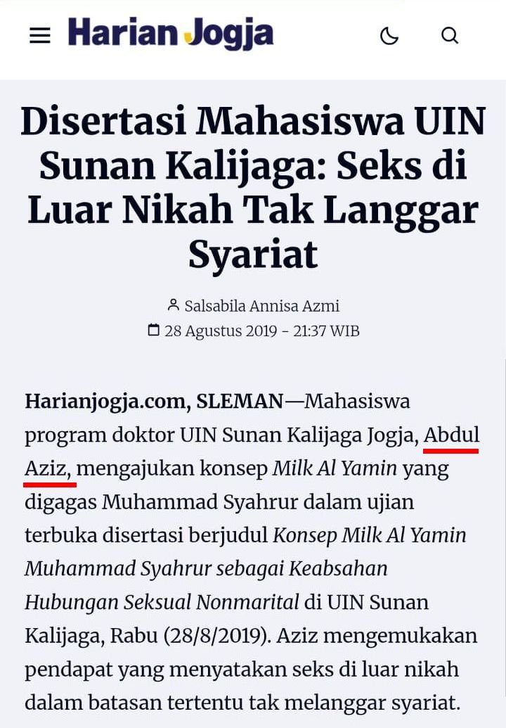 O iya, saya mau ingatkan kasus menghebohkan beberapa tahun lalu disertasi doktor yang membolehkan hubungan intim di luar nikah ini: