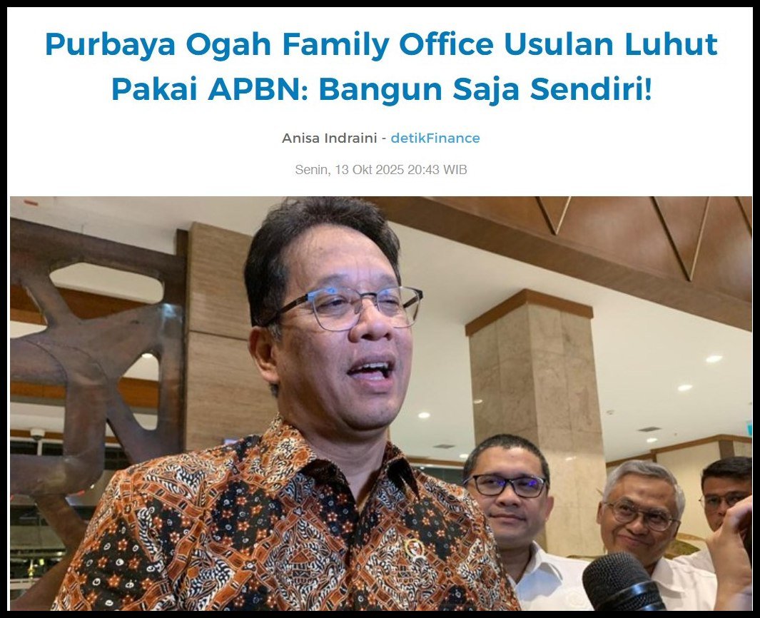 Menteri Keuangan Purbaya Yudhi Sadewa angkat bicara terkait rencana Ketua Dewan Ekonomi Nasional (DEN) Luhut Binsar Pandjaitan ingin mendirikan family office di Indonesia.