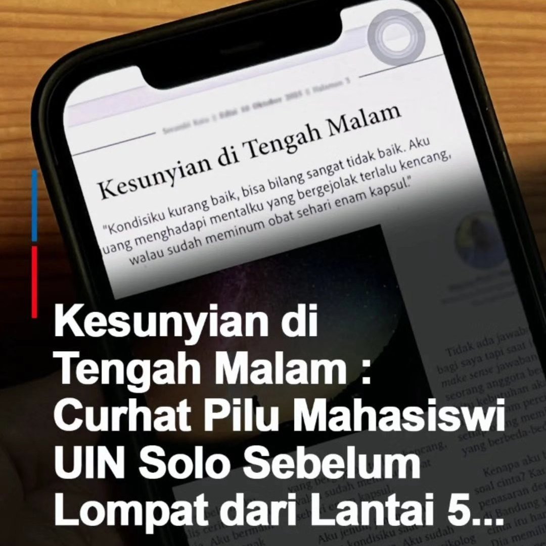 Buletin itu, ternyata sempat memuat sebuah tulisan yang dikirim oleh X, mahasiswi UIN Raden Mas Said Surakarta, yang mengakhiri nyawanya dengan melompat dari lantai 5 kampus, Jumat (17/10/2025).