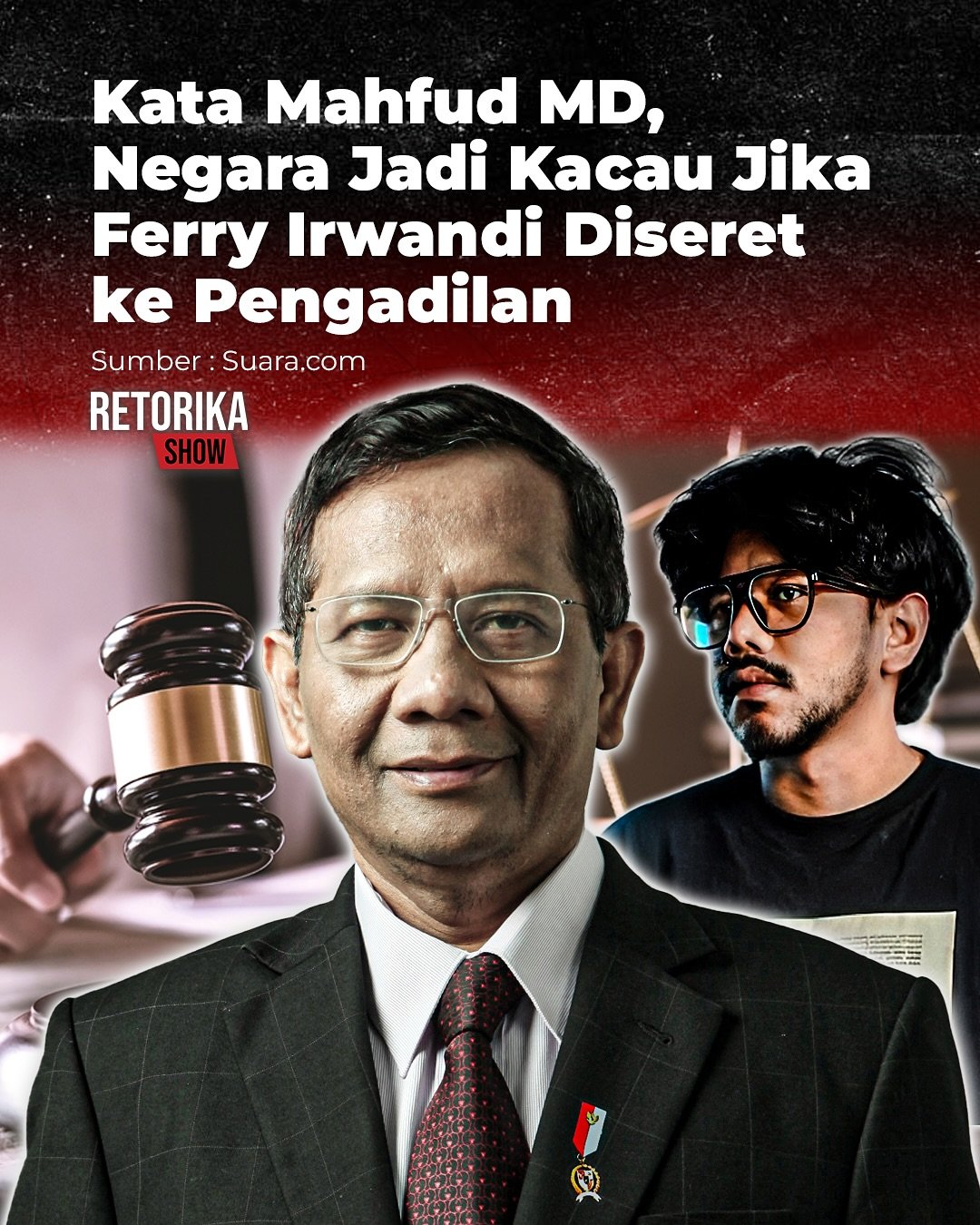 Mantan Menteri Koordinator Bidang Politik, Hukum, dan Keamanan Indonesia, Mahfud MD, angkat bicara soal polemik yang melibatkan Ferry Irwandi. Menurut Mahfud, apa yang disampaikan Ferry seharusnya dipandang sebagai bagian dari aspirasi masyarakat, bukan dijadikan alasan untuk menyeretnya ke ranah hukum.