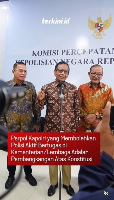 Anggota Komisi Reformsi Polri Mahfud MD kembali menegaskan Peraturan Polri Nomor 10 Tahun 2025 merupakan pembangkangan terhadap konstitusi. Aturan yang membolehkan polisi menduduki 17 instansi dan lembaga dinilai cacat hukum dan bertolak belakang dengan Keputusan MK.