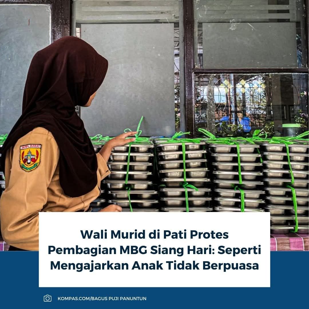 Sejumlah wali murid di Kabupaten Pati menyampaikan keberatan terkait teknis pembagian program Makan Bergizi Gratis (MBG) yang tetap dilakukan pada siang hari selama bulan Ramadhan.