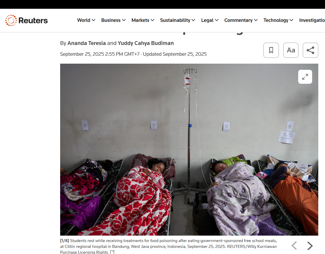Kasus keracunan massal akibat konsumsi makanan program MBG di Indonesia kembali menjadi sorotan, kali ini hingga ke ranah internasional. Beberapa media asing, termasuk kantor berita lomdon, menyoroti bagaimana insiden ini tidak hanya menimbulkan korban kesehatan, tetapi juga memperlihatkan lemahnya sistem pengawasan pangan di tanah air.