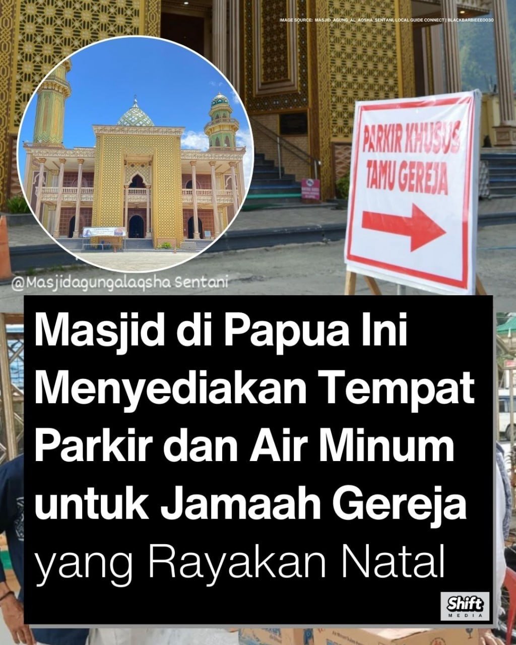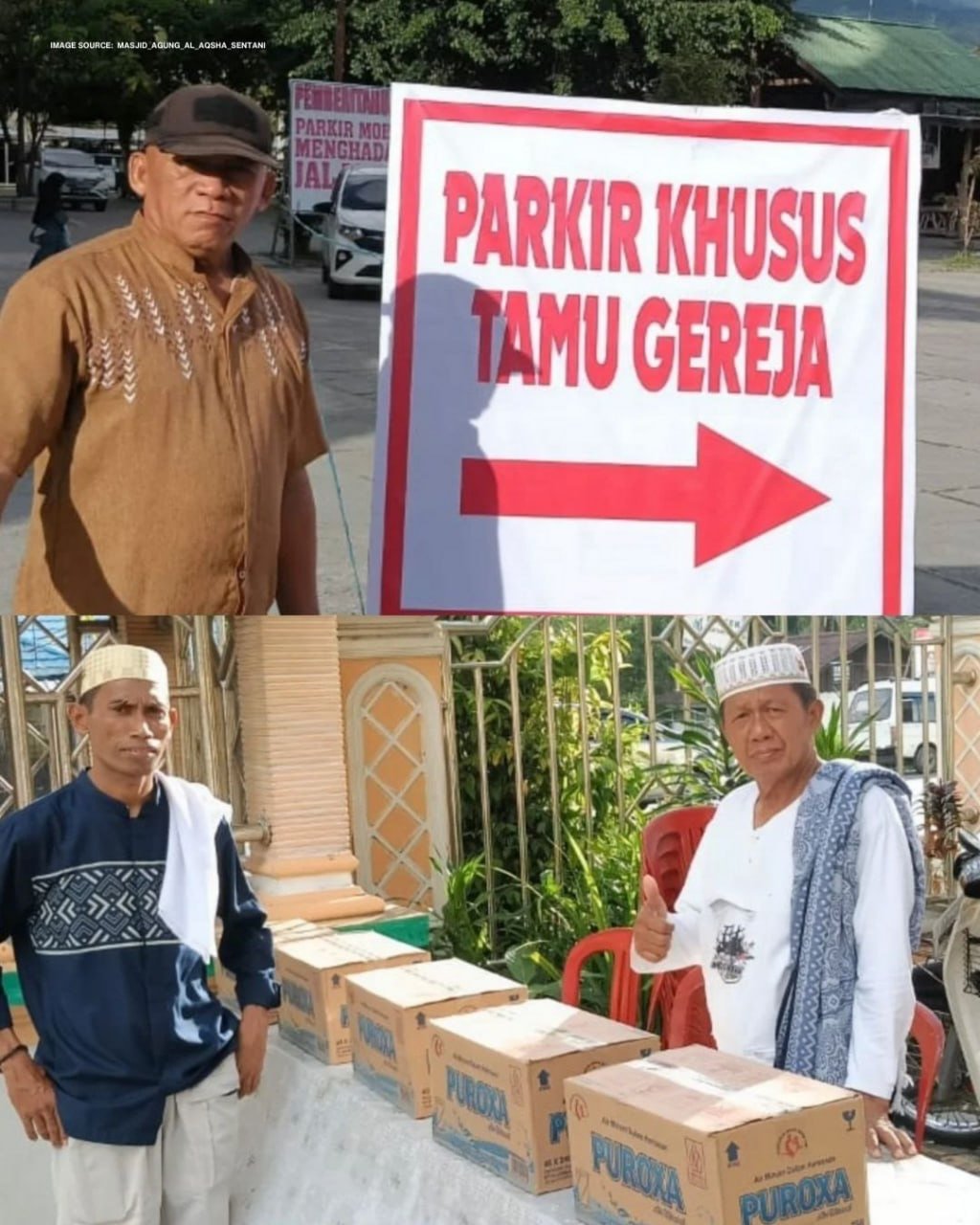 Berlokasi di Masjid Agung Al-Aqsha Sentani, pihak Dewan Kemakmuran Masjid (DKM) menyediakan lahan parkir serta air minum bagi jamaah gereja yang merayakan Natal pada Rabu (24/12/2025). Fasilitas itu disiapkan sebagai bentuk toleransi dan penghormatan antarumat beragama.