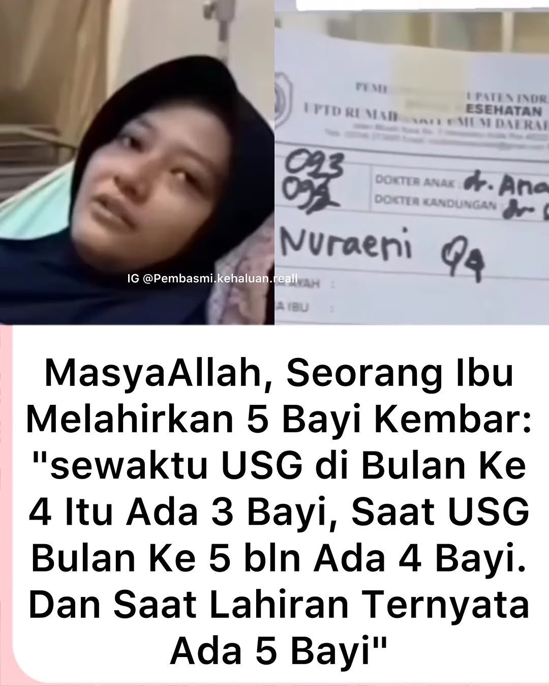 Direktur Utama RSUD Indramayu, Deden Bonni Koswara, menyebut bahwa saat di USG dalam kandungan sang ibu hanya terlihat empat bayi, tetapi saat proses operasi ternyata terdapat lima bayi dalam kandungan ibu tersebut.