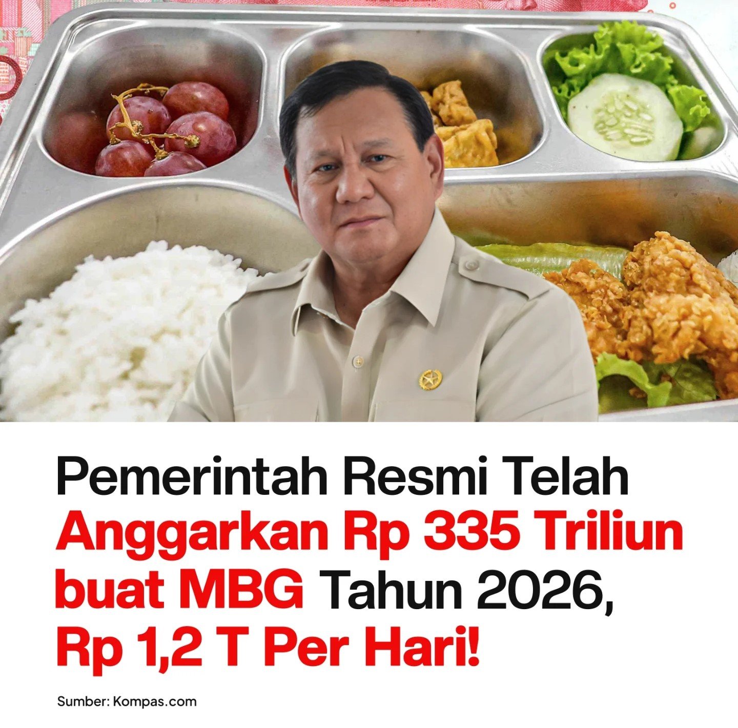 1/3 x anggaran 335 T = 112 T masuk kantong vendor, 223 T net untuk bahan makanan