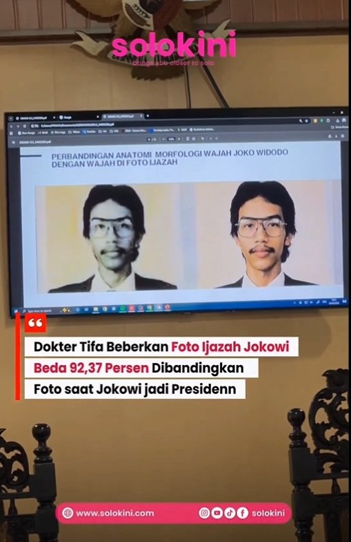 Dokter Tifa beberkan foto ijazah Jokowi beda 92,37% dibandingkan foto saat Jokowi jadi presiden.
