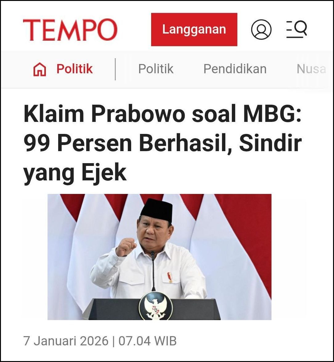 Jadi aneh saja jika baru satu tahun berjalan lalu berani mengklaim MBG 99% berhasil.