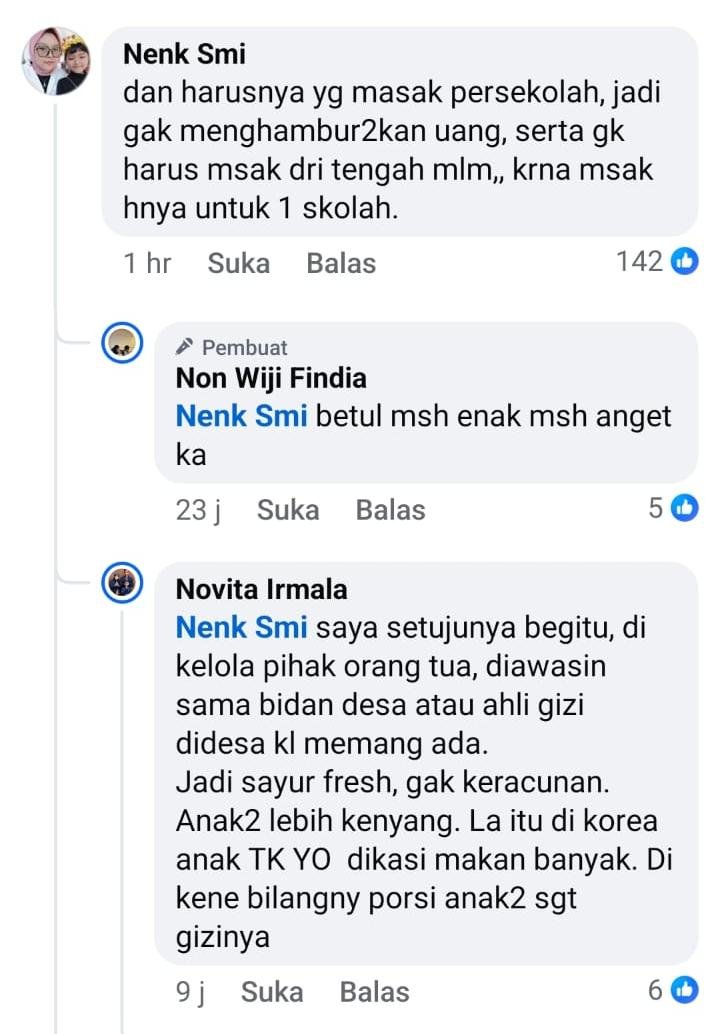 MBG anak TK di Korea ,Masuk sekolah jam 9 (jam 10 dikasih morning snack,jam 12 makan siang ,jam 3 snack sore ) jam 4 pulang sekolah . Dan boleh minta nambah kalo kurang karna ini masakan baru masih anget langsung dimasak disekolah ada chefnya. Dan ini sekolahnya gratissss karena sekolah negeri dapat subsidi pendidikan dari pemerintah jadi tidak ada bayar apapun kecuali ikut ekstrakurikuler & per eksul itu cuma sekitar 13-15rb₩/bulan (sekitar Rp150rb) . Kalau tidak ikut tidak bayar. Kalau aina ikut 4 ekskul & kalau bayar langsung TF ke rekening sekolah,gurunya tidak menerima cash karna takut di kira korupsi waktu audit . ( Sedih aja liat MBG dinegara kita,banyak yg gak layakpun tega ngasihnya padahal negara kita kaya raya bangettt 😭 ) Bukan nuntut harus seperti korea karna kitapun tau budgetnya tp seenggaknya kasihlah makanan yg layak,contoh dapur MBG yg amanah juga bisa ngasih menu sehat, padahal anggarannya sama saja bukan? buat dapur MBG yg amanah semoga masuk surga Aamiin.
