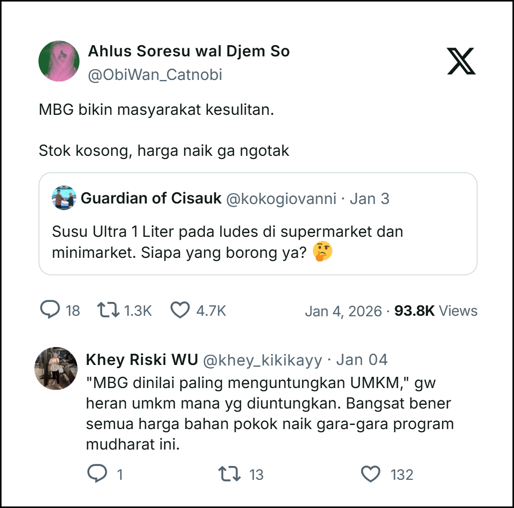- Dampak Inflasi: Badan Pusat Statistik (BPS) mencatat bahwa kenaikan harga pangan akibat MBG telah berkontribusi pada inflasi daerah.