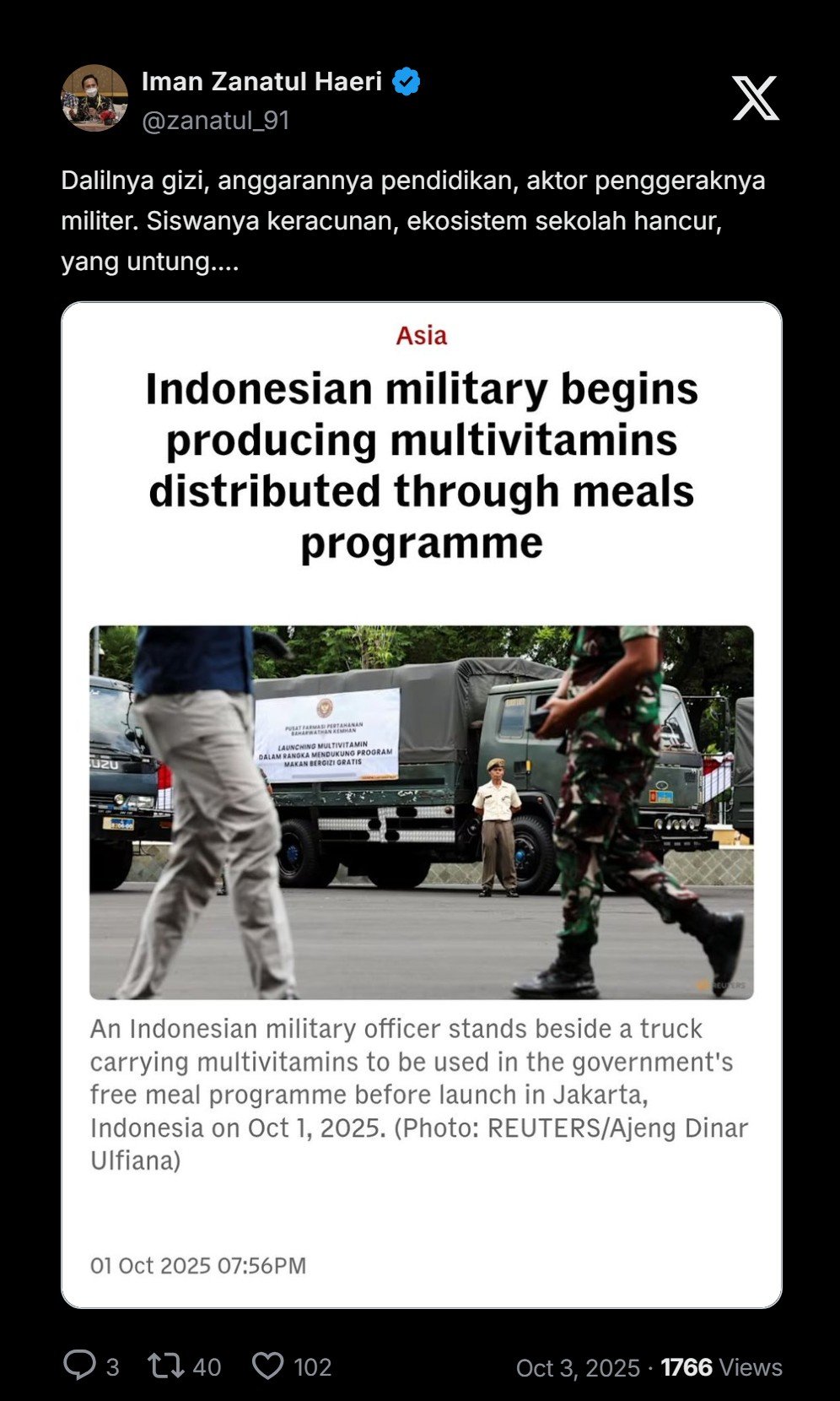 Pak Iman melampirkan berita media asing Reuters yang menyoroti MBG: