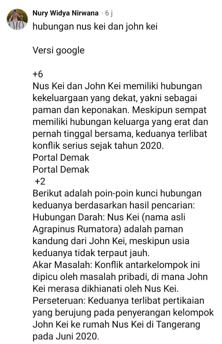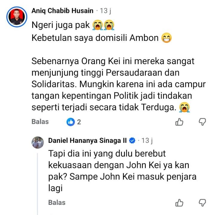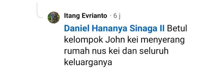 Memang ngeri perseteruan klan Kei ini, klan yang cukup dikenal karena berhubungan dengan berbagai tindak kekerasan. Nggak tau apakah kali ini pelakunya terafiliasi dengan John Kei atau tidak. Polisi harus jaga situasi supaya tidak terjadi aksi saling balas yang meluas.