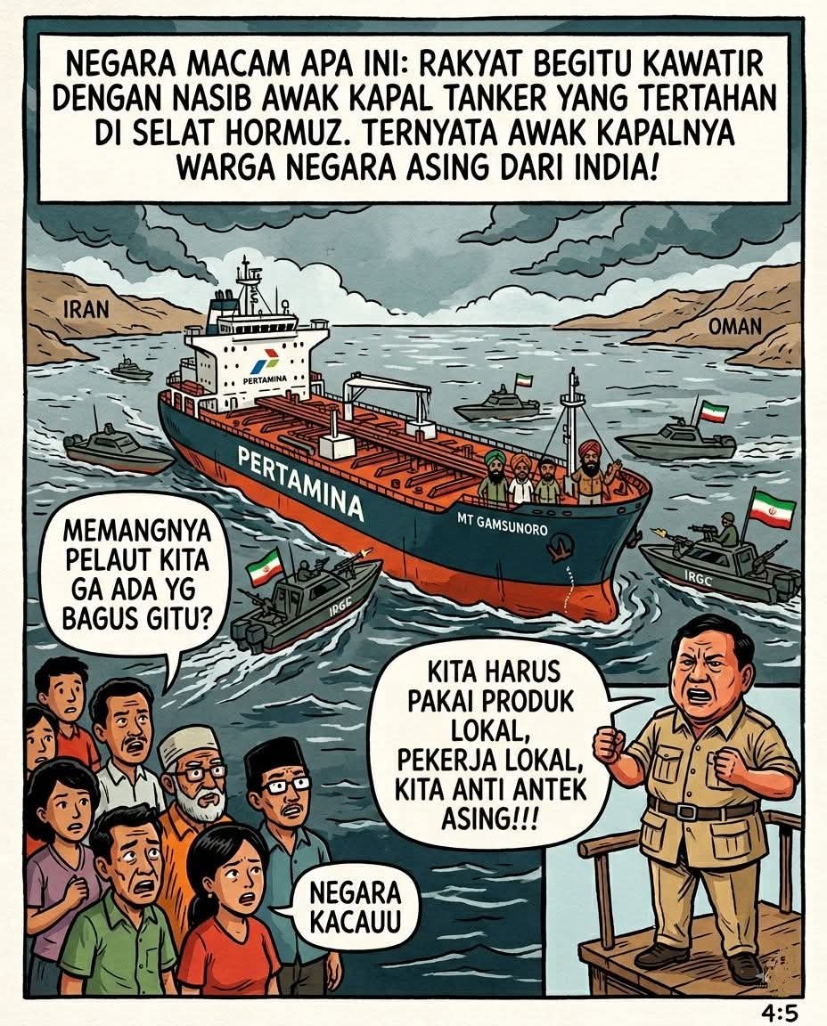 Beredar video dengan akun @andrianumar yang mengungkapkan bahwa kapal tanker milik Pertamina justru diisi penuh oleh kru asal India.