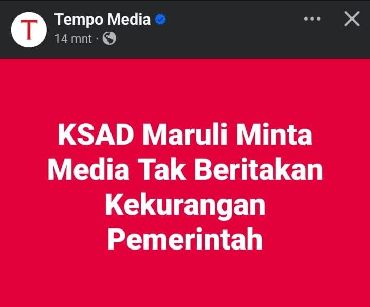KSAD Maruli Minta Media Tak Beritakan Kekurangan Pemerintah