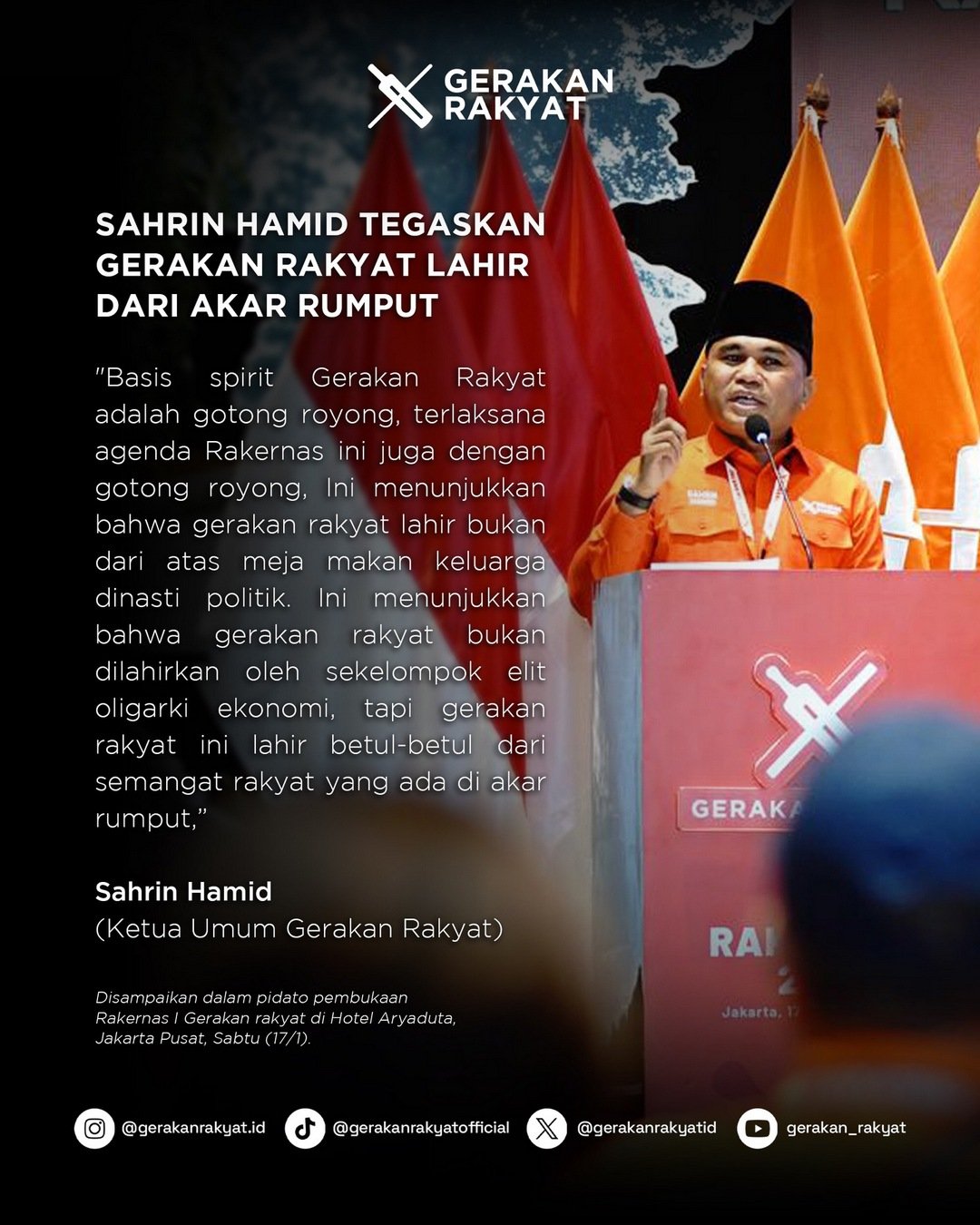 Sahrin Hamid adalah figur penting dalam lanskap politik Indonesia yang dikenal karena dedikasinya terhadap keadilan sosial, pemberdayaan masyarakat, dan peran aktifnya dalam pergerakan politik sejak era reformasi. Ia menjadi sorotan publik setelah dipercaya memimpin Partai Gerakan Rakyat, sebuah partai baru yang lahir dari semangat relawan rakyat dan aspirasi perubahan.