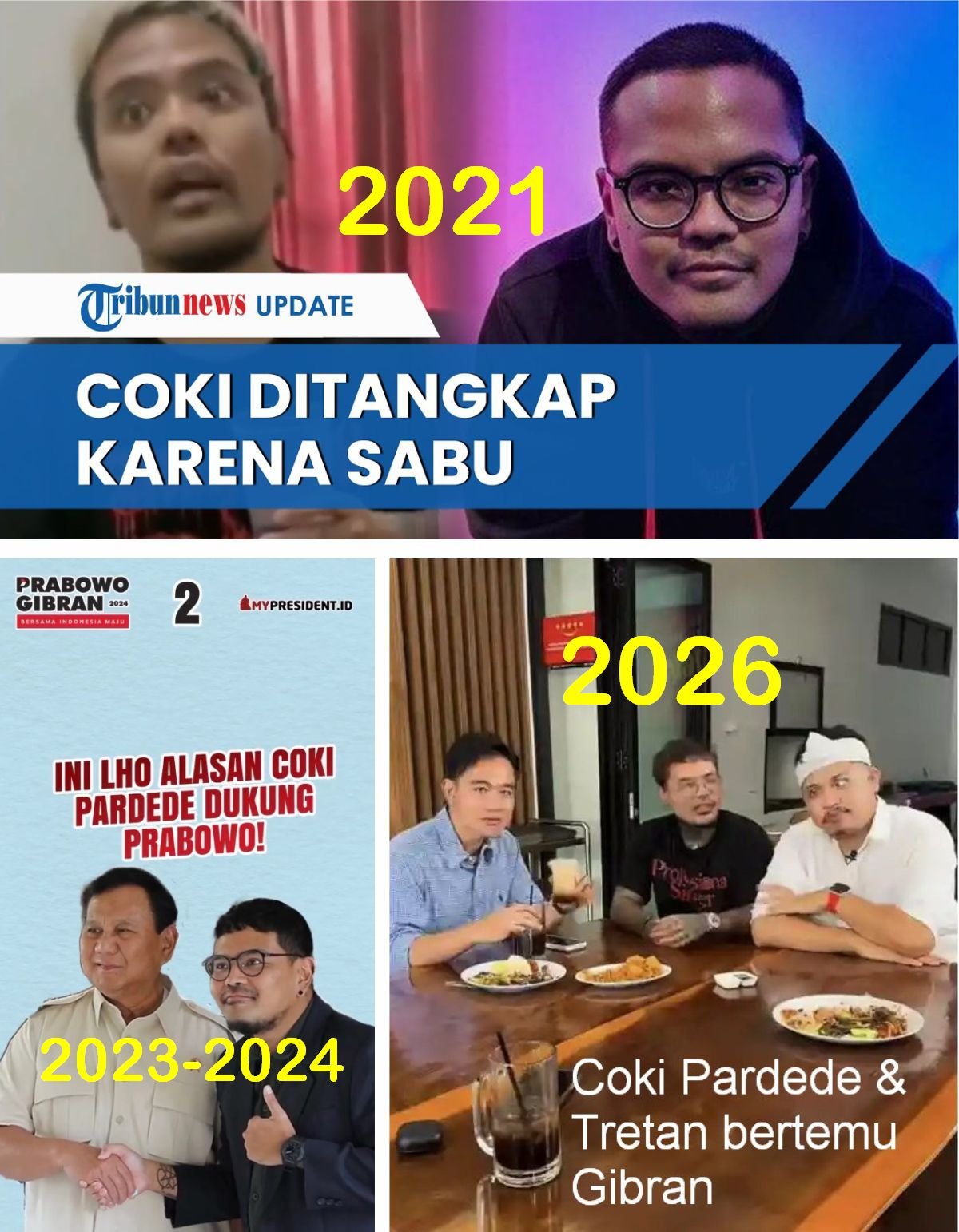 Pada 17 Januari 2026, Coki Pardede dan Treten bertemu Wapres Gibran. Pertemuan ini terjadi setelah Gibran menjadi salah satu sosok yang dikritik komika Pandji Pragiwaksono dalam pertunjukan Mens Rea yang tayang di Netflix. Coki Pardede dan Tritan memberi dukungan kepada Gibran.